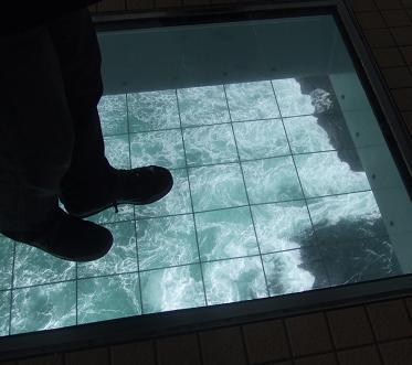 御親切に、ところどころ下の海面が見えるガラス窓があり。高さ45mは、うーん恐い。