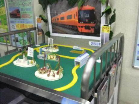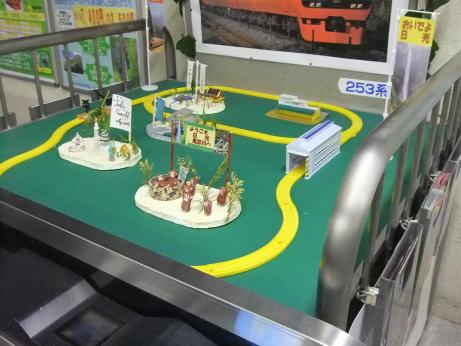 と、記事を書いた今朝、改札口を見てみると、プラレール車両が走っていたぞ。しかも、253系の特急電車が..。![]()